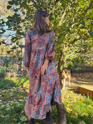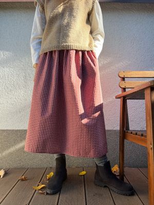 Tkaniny z których szyję pochodzą głównie z drugiego obiegu; nadając im nowe życie staram się tworzyć zrównoważoną modę z poszanowaniem środowiska naturalnego.