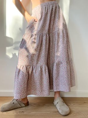 Tkaniny z których szyję pochodzą głównie z drugiego obiegu; nadając im nowe życie staram się tworzyć zrównoważoną modę z poszanowaniem środowiska naturalnego.